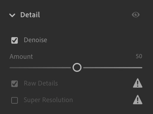 I'm wondering what type of file I should be shooting in with my Z8. I shot in NEF images but when i go to detail/denoise and it processes the photo, there is then a caution sign next to 'raw details' and 'super resolution.' Raw details is checked and grayed out and 'super resolution' is grayed out but not checked.