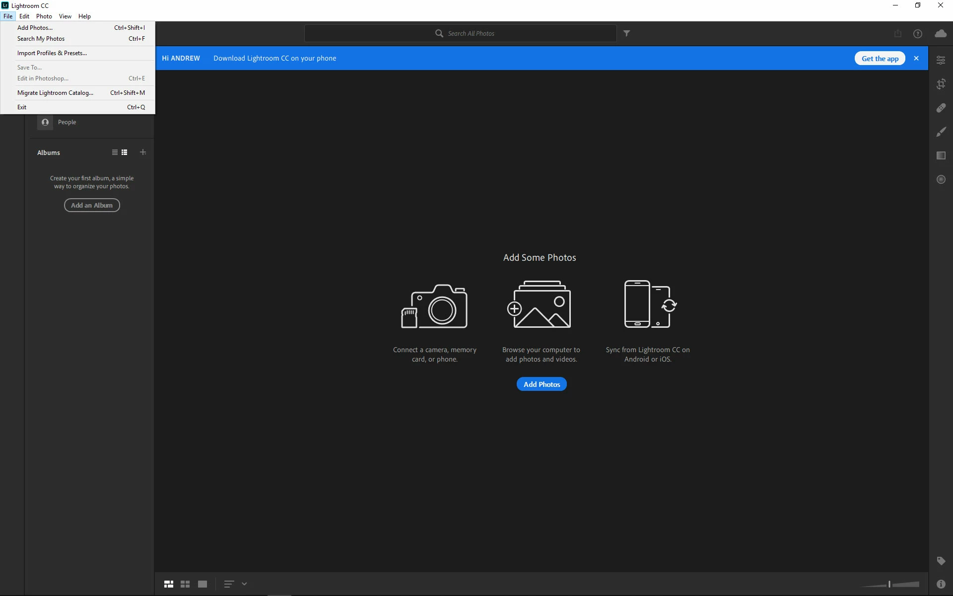 I am having an issue with not seeing "File > Open Catalog." Below is a screenshot showing you what I am seeing. I am trying to restore from a previous catalog.