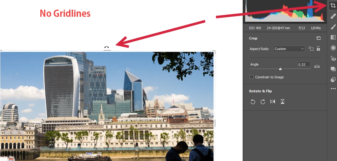 No Grid Lines Showing when Using the Crop Tool