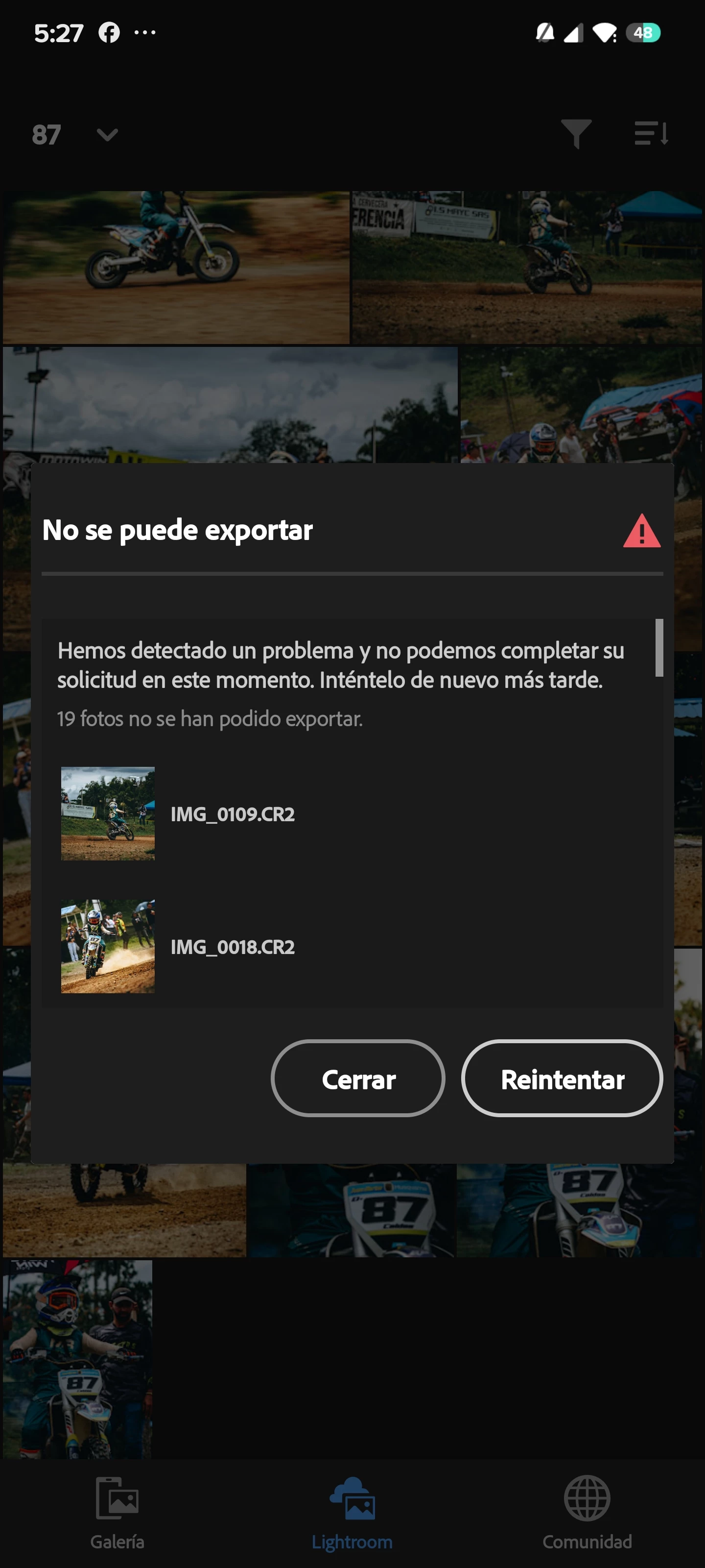 No me está permitiendo descargar fotos en ligthroom mobil,
