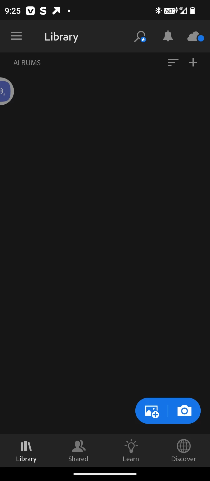 Are you selecting the "Gallery" tab at the bottom left of the main Lightroom screen? That should reveal all the photos currently stored in the device gallery, allowing you to view them from within Lightroom.