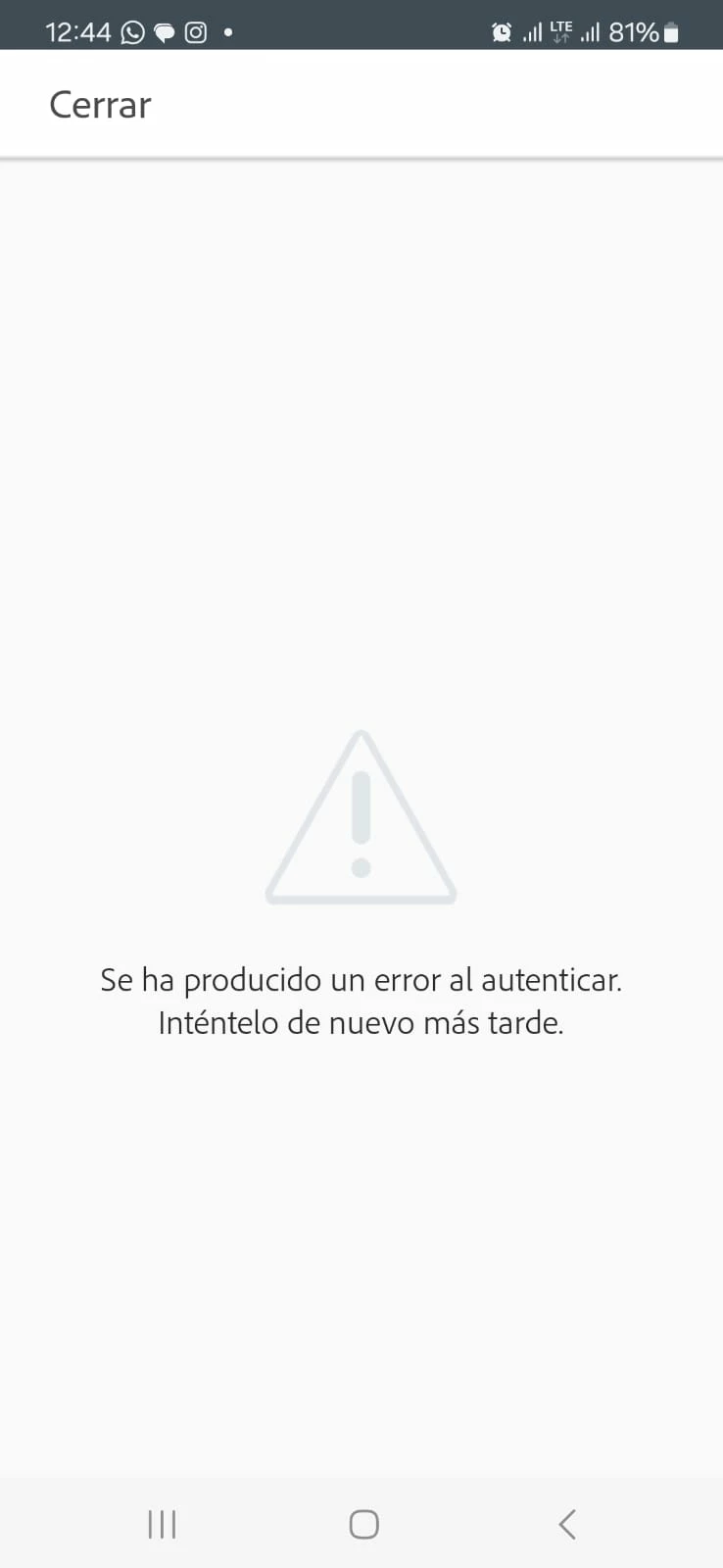 Cambien de telefono recien y a la hora de querer iniciar sesión por la aplicación en mi telefono Android, inmediatamente me arroja a un cartel con la descripción "ERROR: Se ha producido un error al autenticar. Intentelo de nuevo más tarde."