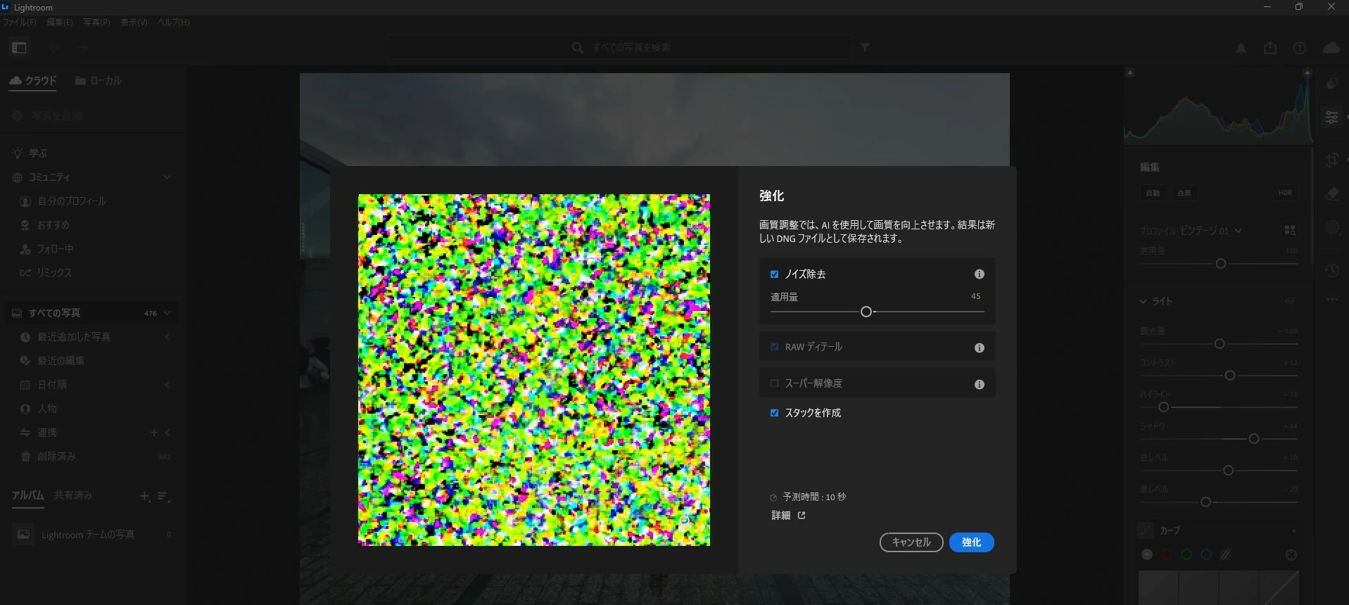 When trying to correct a photo taken in RAW format using the Lr app on an iPhone 13 mini on a PC, noise appears in the image.