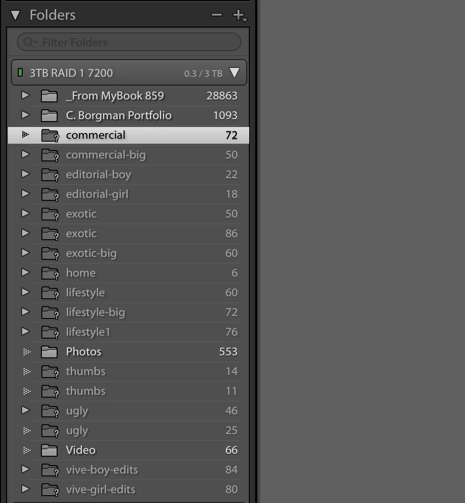 I have 17 folders that no longer exist on my hard drive but they are still showing the number os images (used to be in the folder) and the question mark. But there are no previews when I click on that question marked folder.