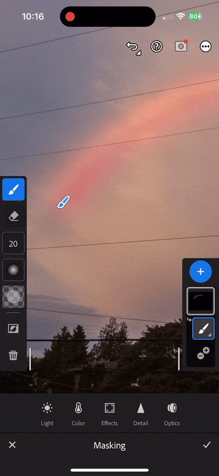 Non movable masks for mobile lightroom