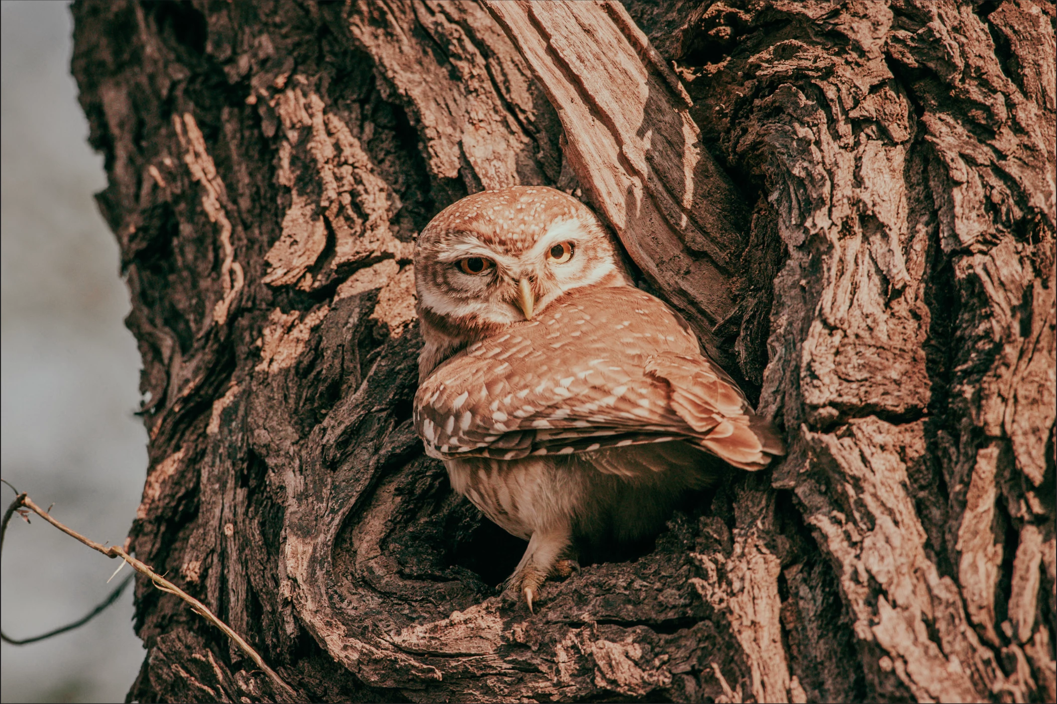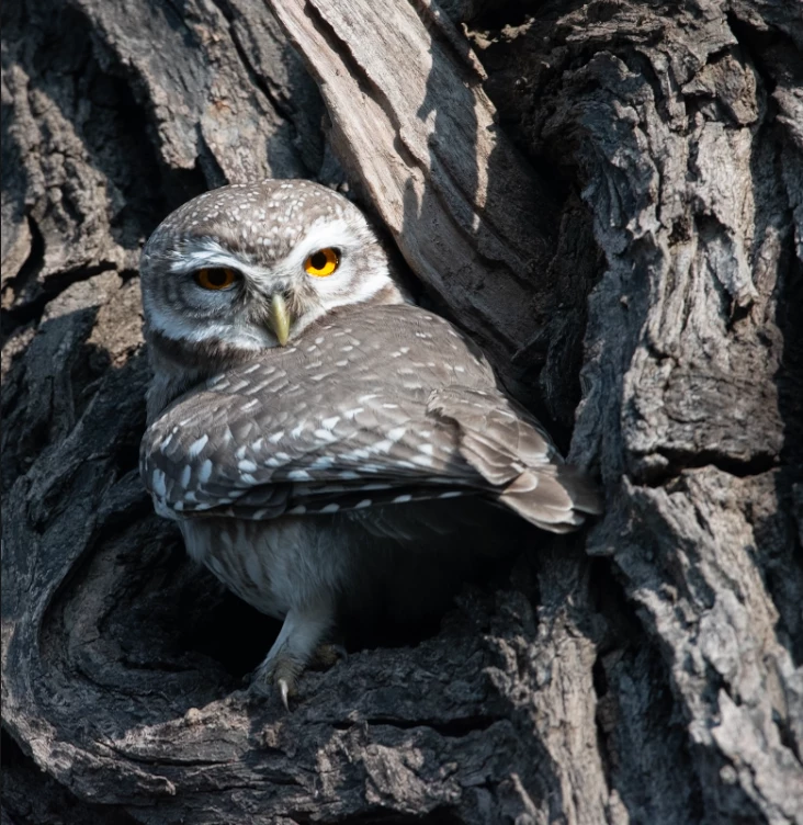 The Spotted Owlet (scientific name: Athene brama) sits perched on a tree, glaring straight into the camera like it knows it’s the star of the photoshoot. Hope you have fun Remixing this image!