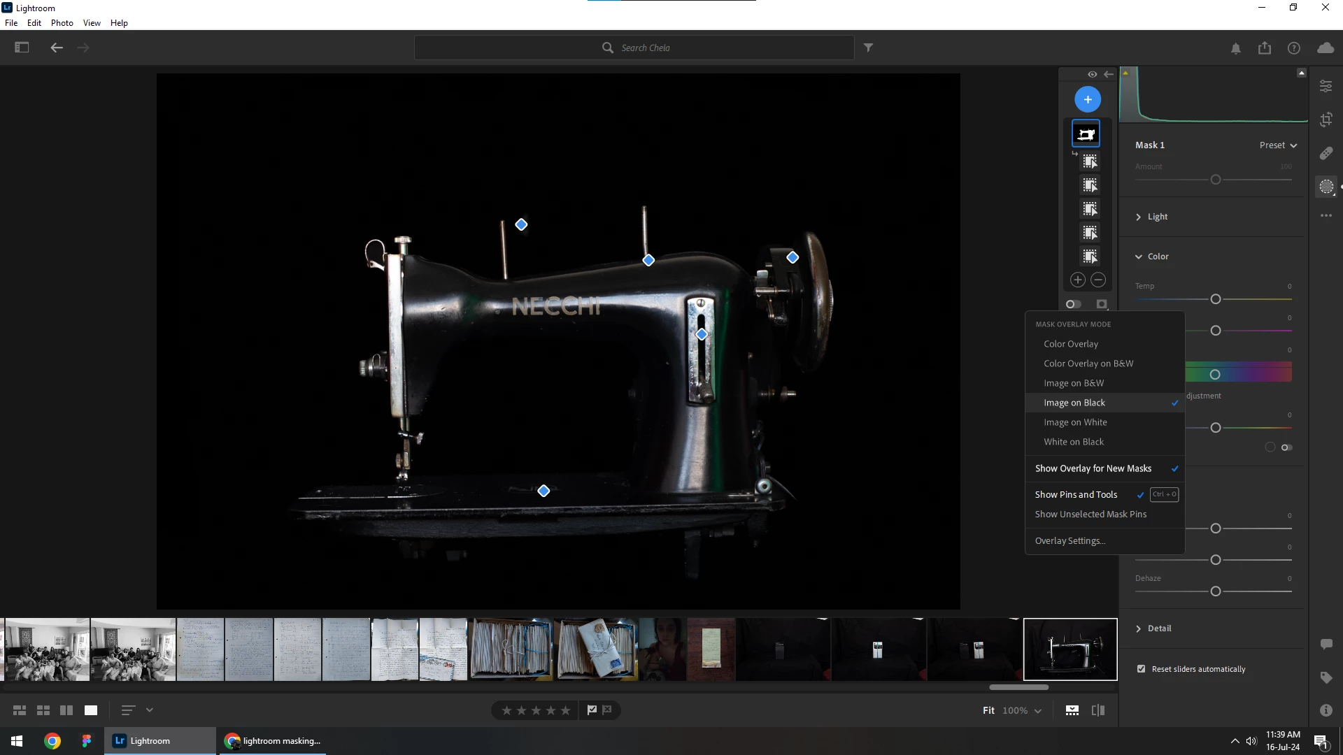 Hi! I need help. I created a mask in the masking panel and in the overlay options I chose "image on black" as shown in the above screenshot. However these adjustments dissappear when I switch to editing panel and doesn't show in exported file.