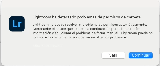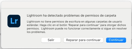 I just updated to Lightroom 7.3 and now everytime I open the app it shows a error message saying it has detected folder permissions: