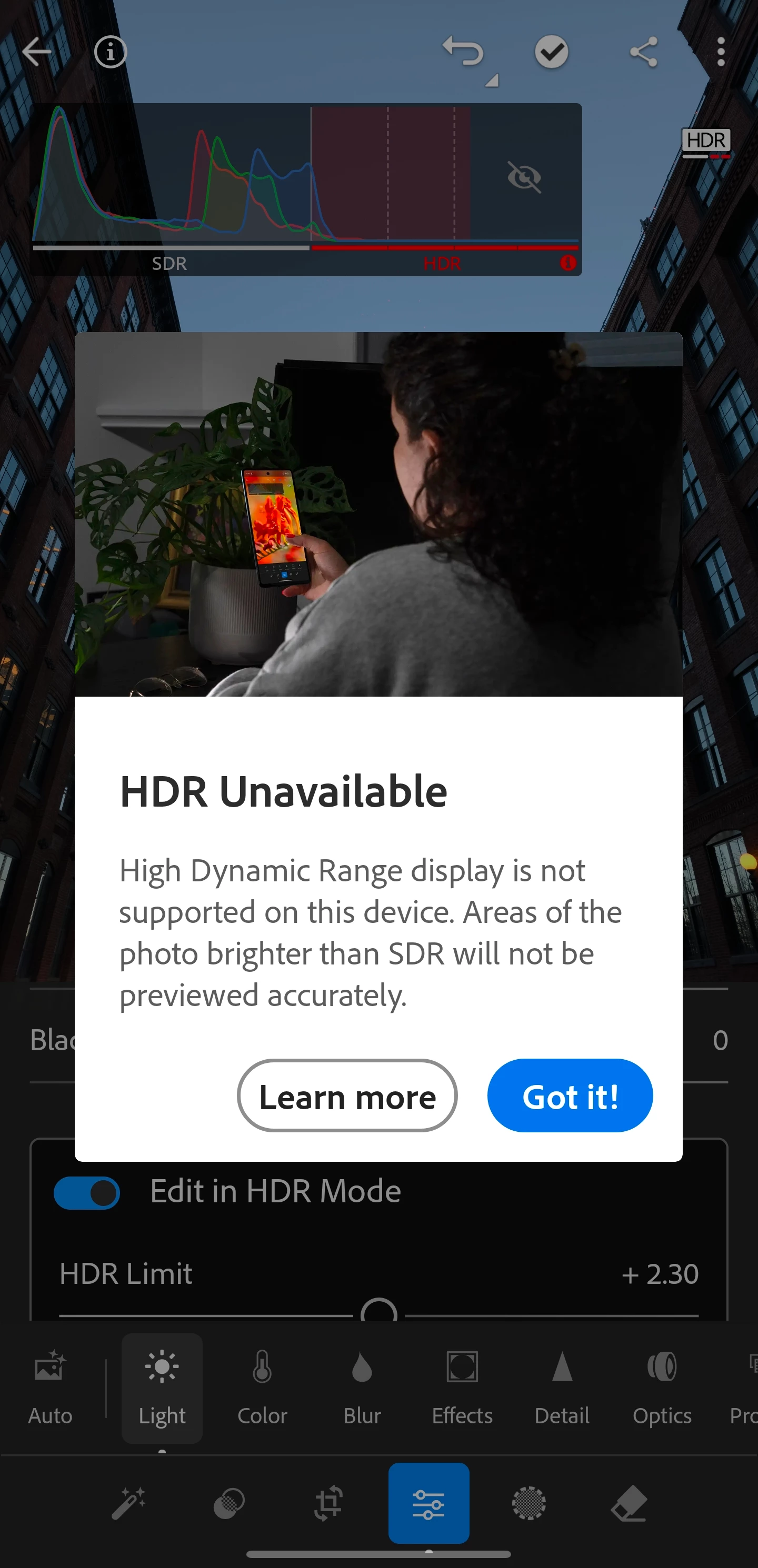 P: Lightroom mobile v11.2.3 on Samsung Devices HDR Editing becomes unavailable when Adaptive or Extra Brightness is enabled