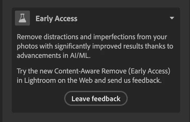 P: New AI-powered Content-aware Remove (Early Access) available in LrWeb