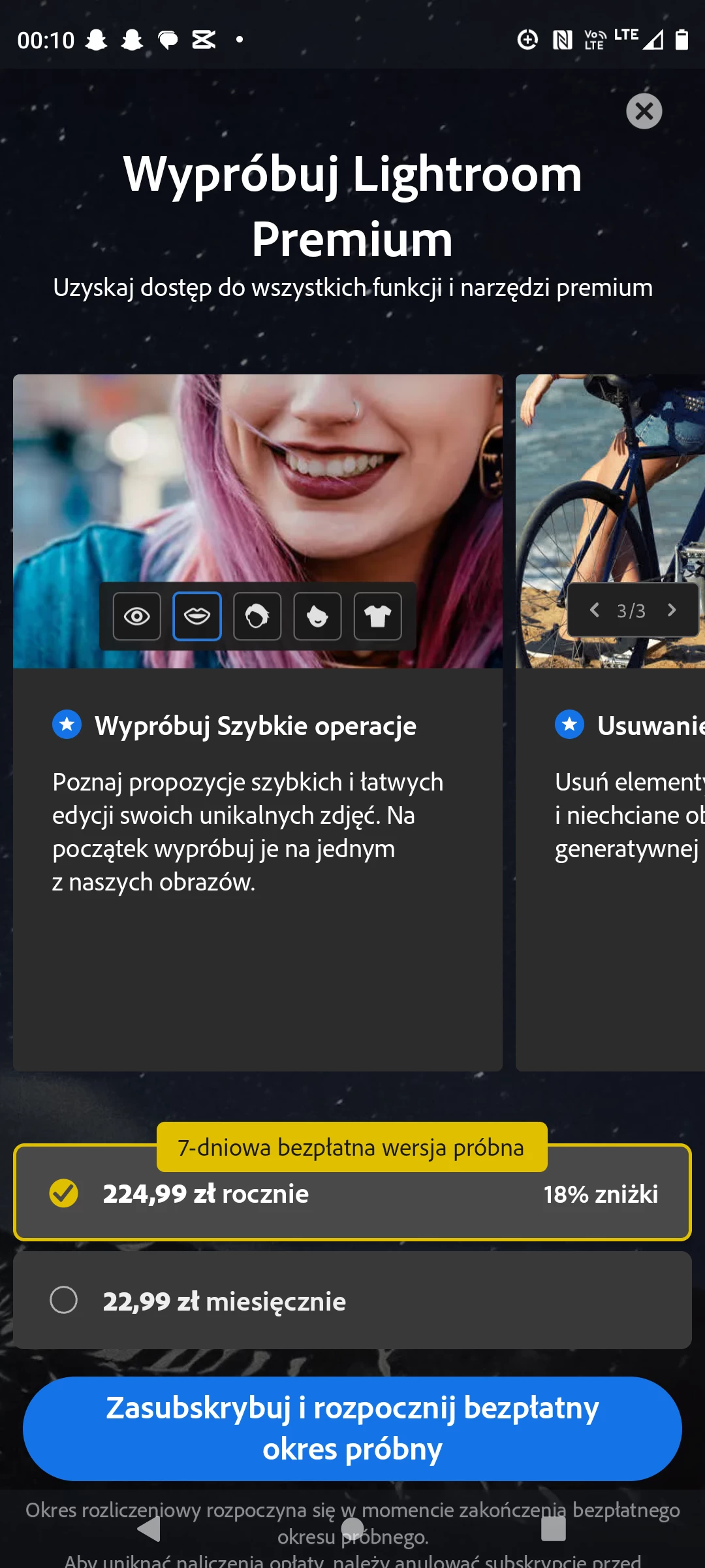 Hey, @rumblejunkie. Welcome to the Lightroom community. I've reviewed your account you've used for the community & could not find any active subscription, or transaction for Lightroom.