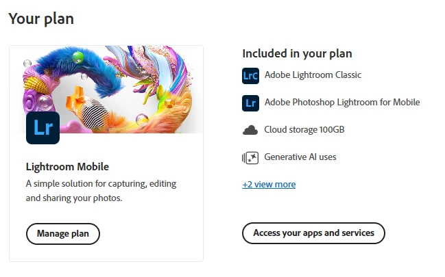 Please log in here to get the Lightroom plan: https://adobe.ly/3AQlQ4d;