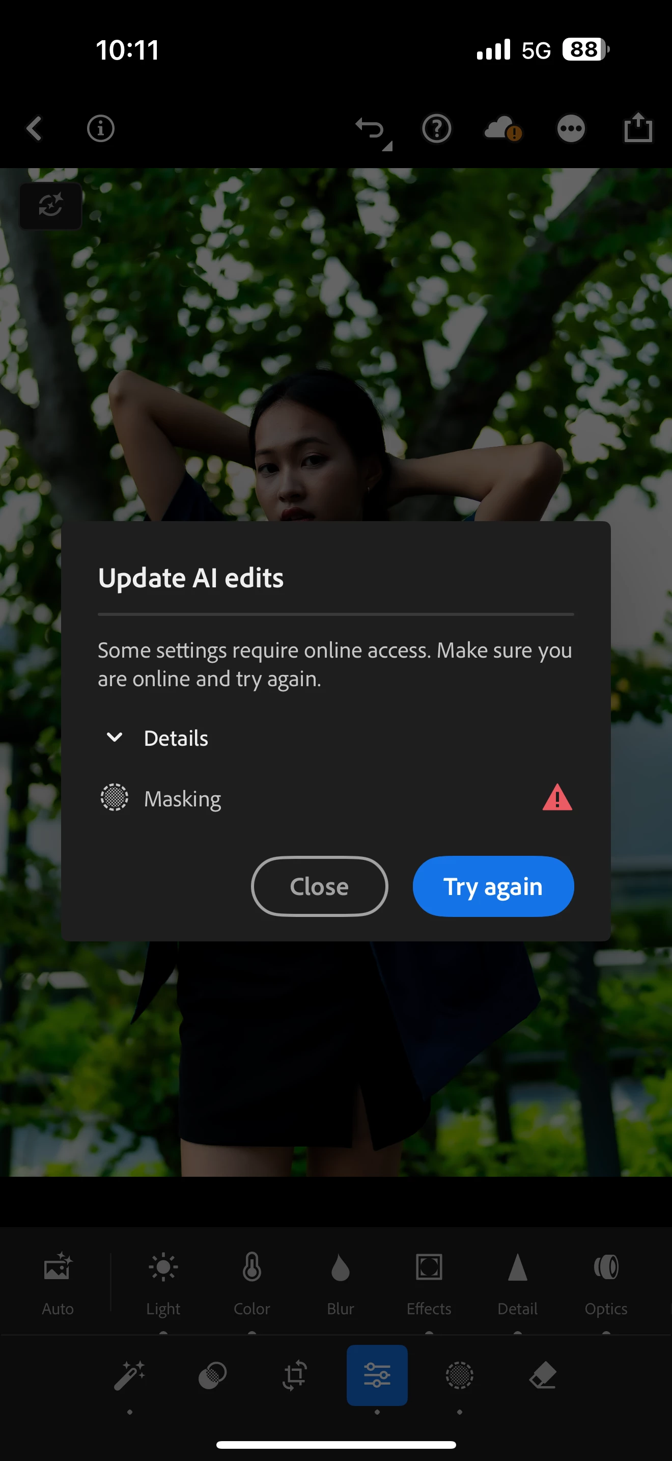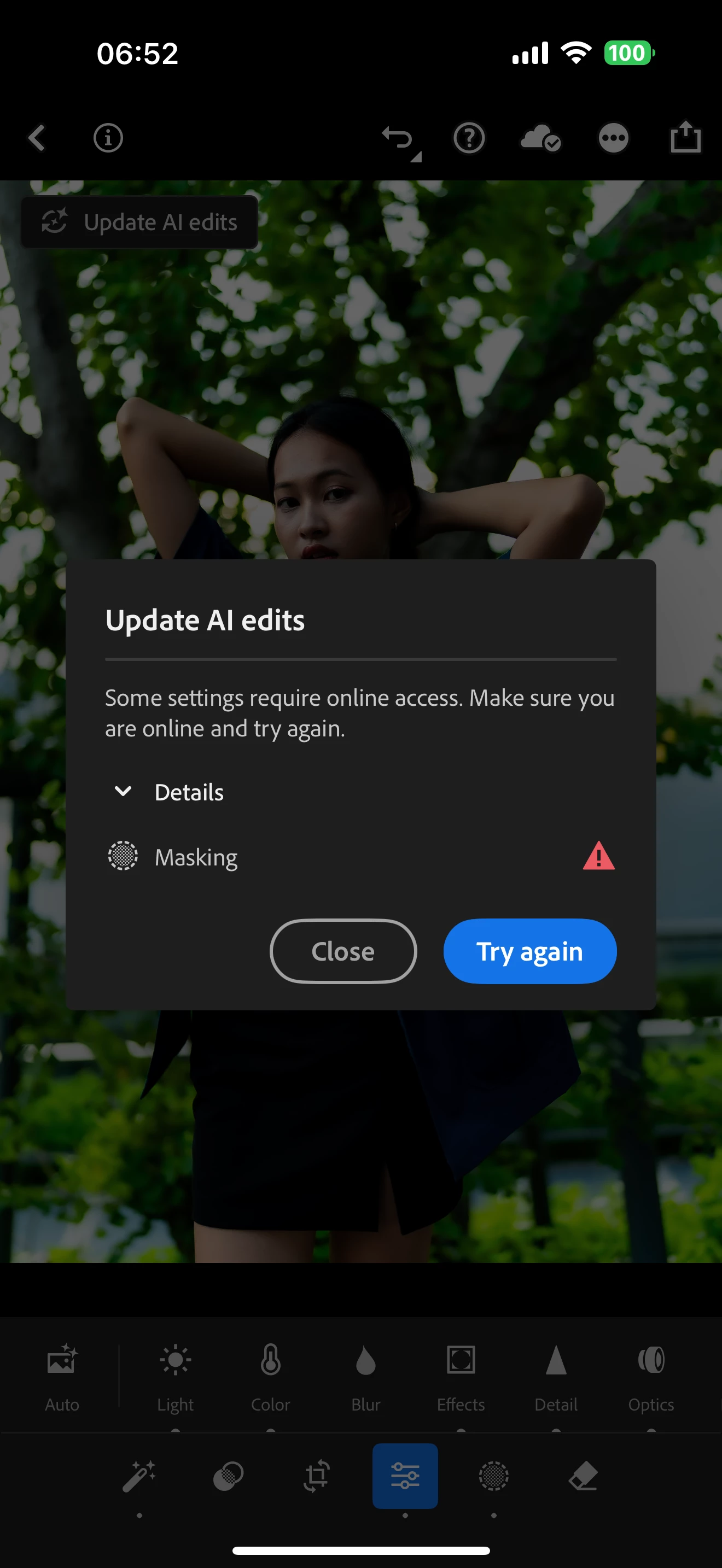 Just wondering, does this happen with every photo and every type of mask? If you haven’t already, could you try clearing your Lightroom cache? To do that, go to Gallery View, tap the menu button in the top right corner, then head to Local Storage and select Clear Cache.