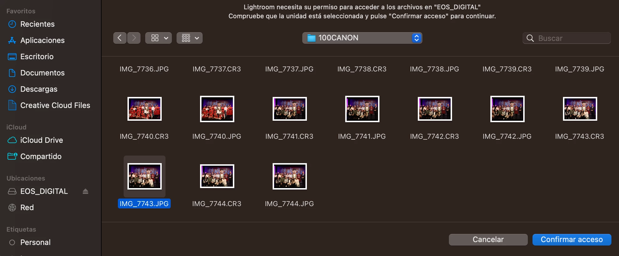 Me he cambiado el portátil a un Macbook Air y al instalar Lightroom y intentar importar las imágenes de la tarjeta me sale un mensaje diciendo que no tengo permiso para ver el contenido...