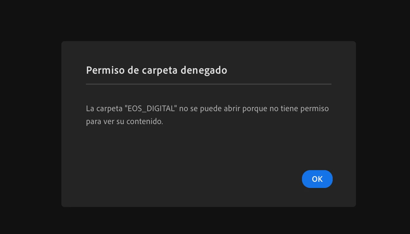 PERMISO DE CARPETA DENEGADO EN LIGHTROOM