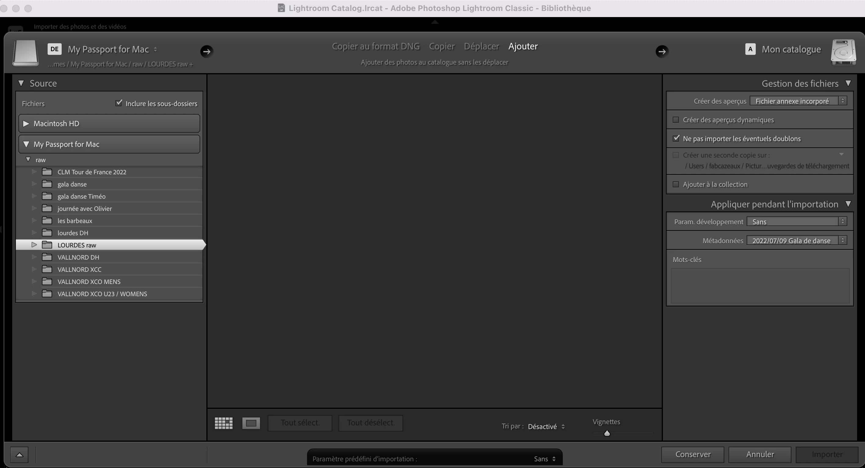Hello, when I want to import photos from my different media (SD card, HARD DISK, CF card), these are no longer displayed in the catalog. Thank you for your help.
