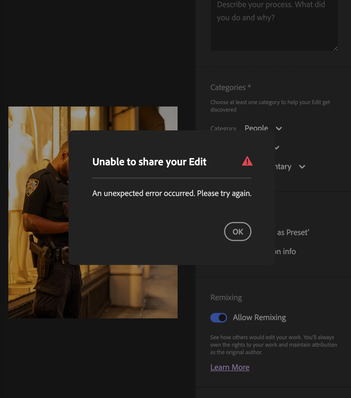 Posting to Discover Lightroom community keeps failing — all of a sudden