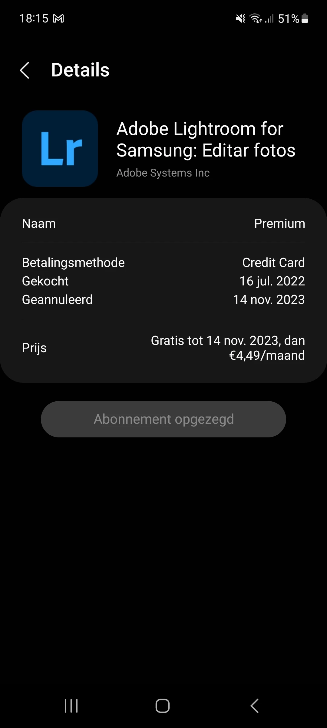 I used to have a Lightroom for Samsung premium subscribtion, but I had to block my credit due to phishing reasons. As a logical result was my lightroom subscription cancel at the next payments. Now I resubscribed and paid my first month, but it is not working.