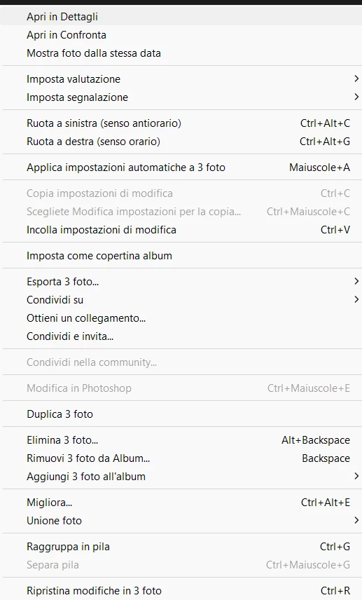 By selecting multiple photos edited in Lightroom the "edit in Photoshop" choice becomes gray and there is no possibility of opening the images as layers between the two software.