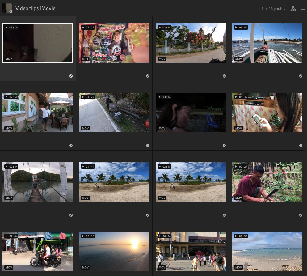 All video clips are uploaded at the same time and have the same format .mov and they are all produced by the same program iMovie.