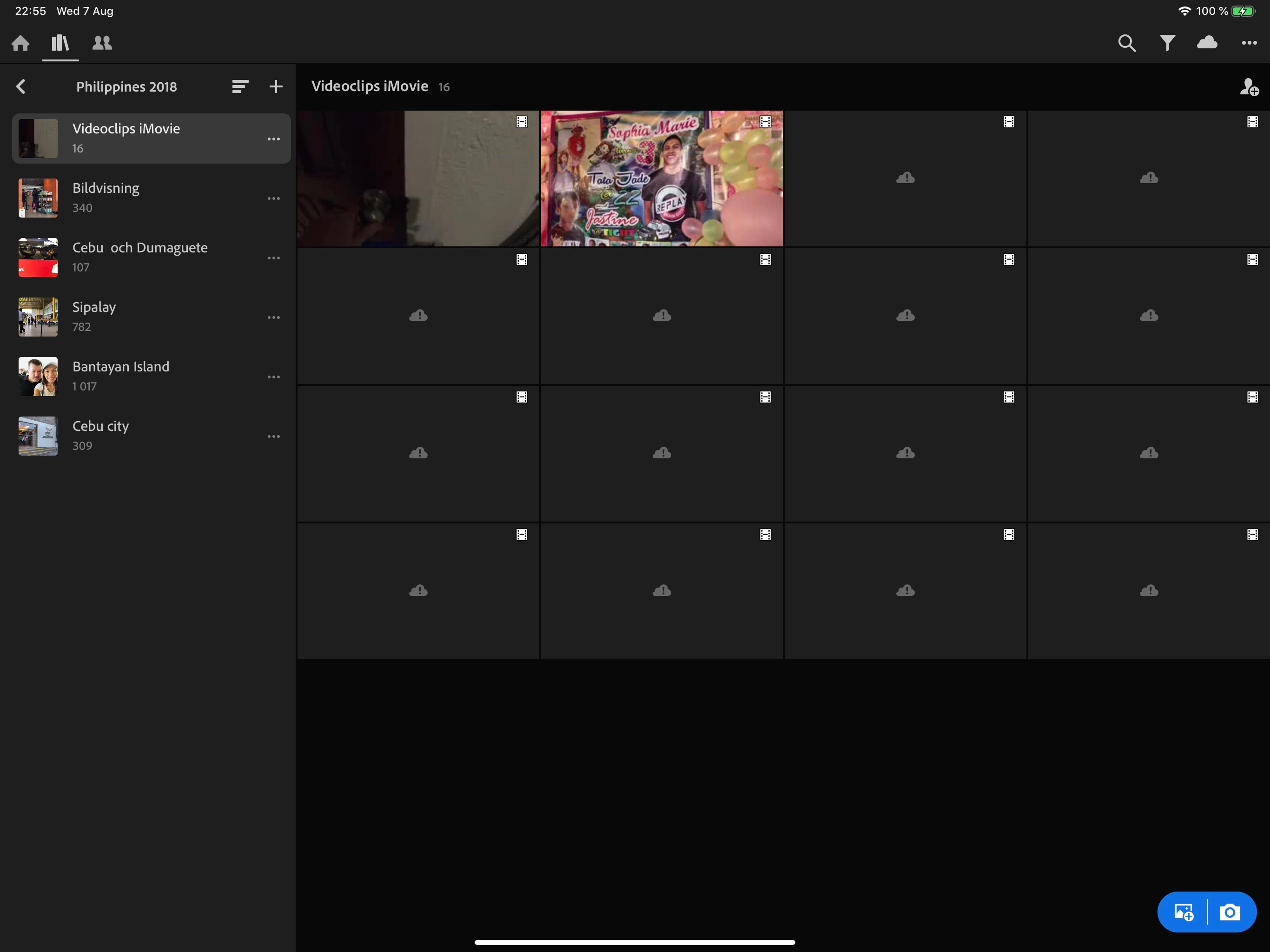 in my Lightroom mobile on my MacBook Pro there are a set of video clips which are backed up and synced. But when I check in the same folder in Lightroom for iPad Pro, some of the video clips are not accessible. They are there with names but they have the cloud symbol with an exclamation mark on it. Some of the video clips are accessible though.