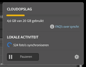 According to my account, I was already using 4.6GB out of 20GB. Apparently, there is an action going on where 524 files would be synced. However, there is no progress in that sync, the counter is stuck.
