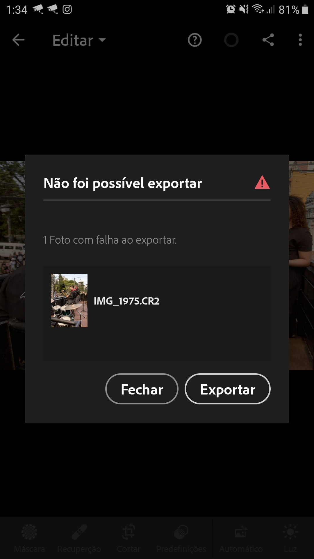 Problema ao exportar fotos do Adobe Lightroom Mobile