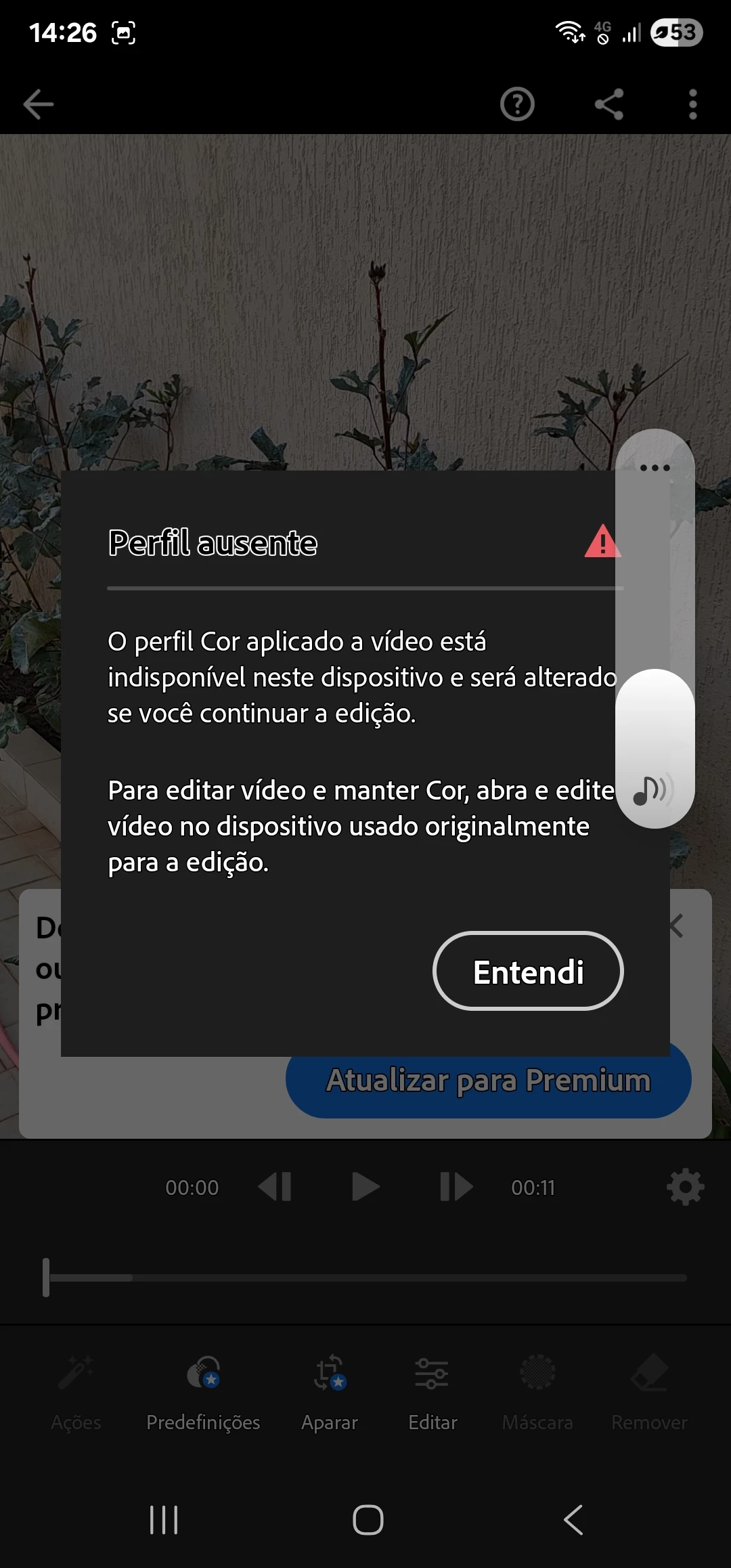 o app não permite editar videos em decorrência de perfil ausente, não há quem corrija esse erro e desinstalei. Segue mais informações: Ao tentar editar videos aparece a mensagem " PERFIL AUSENTE" , " O PERFIL COR APLICADO AO VÍDEO ESTÁ INDISPONÍVEL", logo após isso aparece outra mensagem: "TORNE-SE PREMIUM", isso aconteceu após atualizar o app, e tentei desinstalar instalar novamente e ainda persiste, e estou apenas editando um simples vídeo como sempre fiz, tentei em outros app e consegui.
