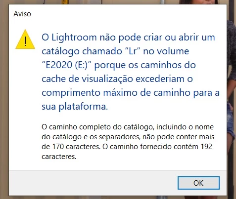 Estou com este problema ao acessar um catálogo em uma pasta. É necessário sempre alterar a localização do catálogo para a àrea de trabalho para que o Lightroom possa ser acessado. Teria alguma maneira de resolver este erro?