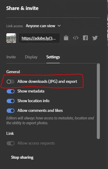 Protect photo from download or copy in a shared album