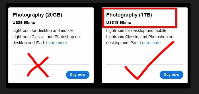 I am not looking at the different plans Adobe has to offer and am not sure which will suit my needs the best. I am between the standard photography plan (Lightroom + PS with 20GB) or the Lightroom 1TB plan.