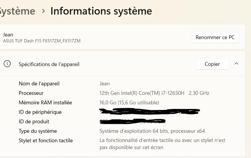 Je vous mets aussi les informations à propos de mon PC