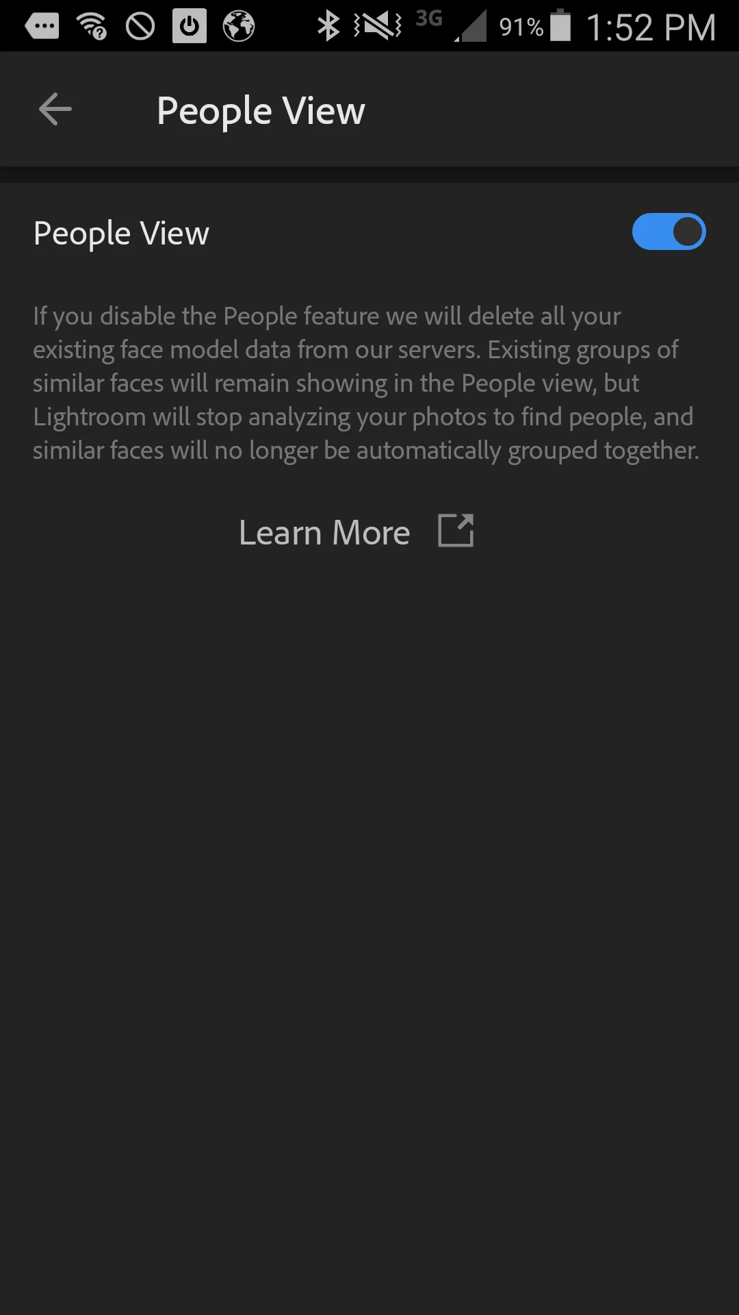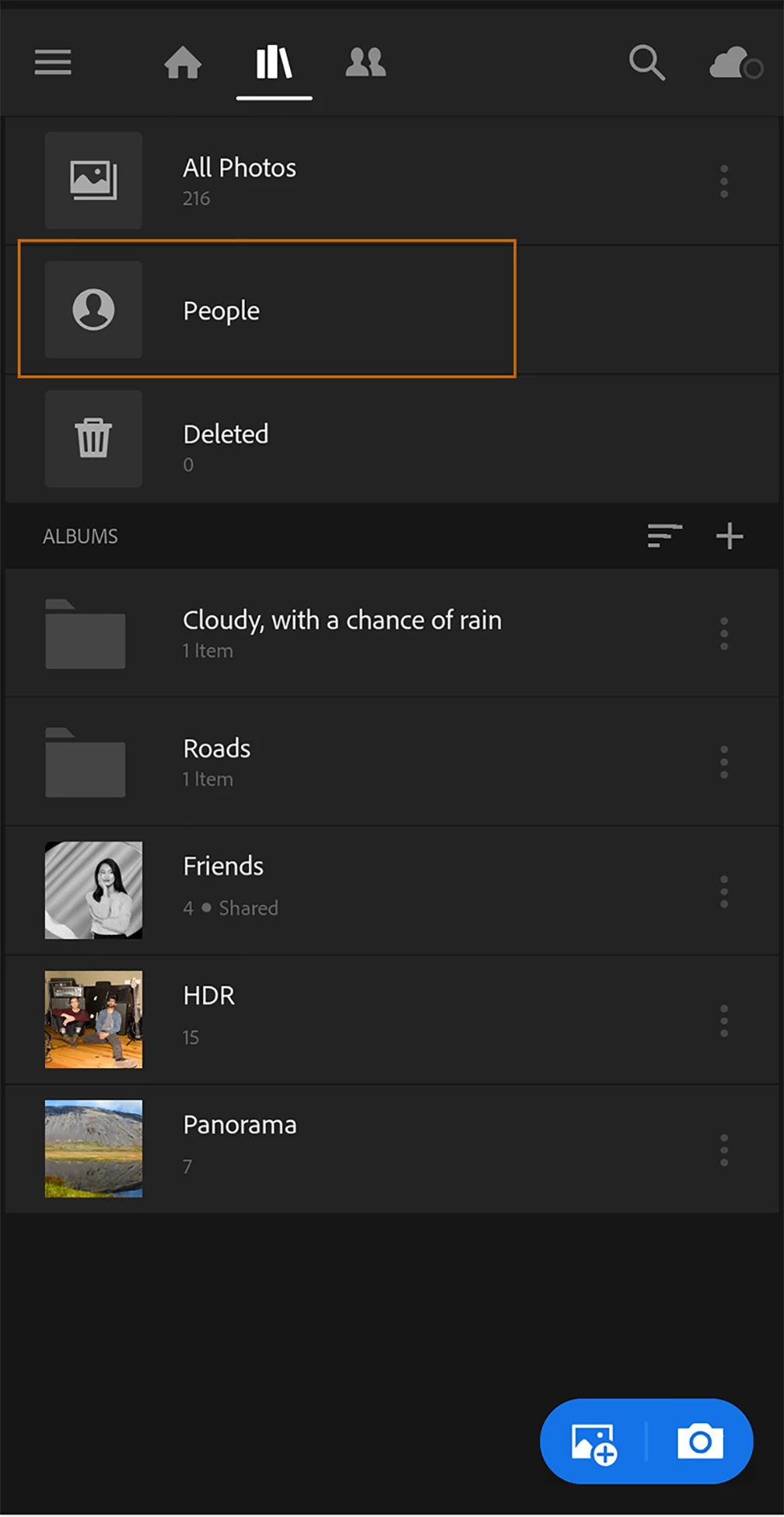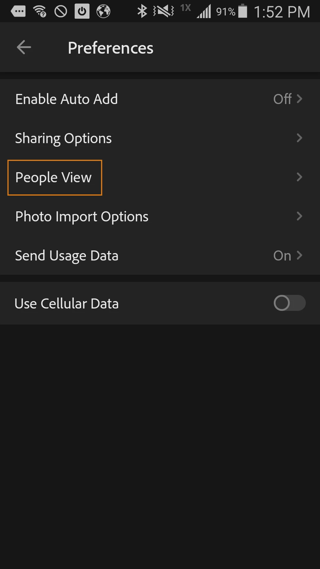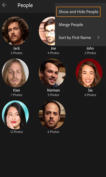 Lightroom for mobile has solved this issue with the People View feature. This feature, available on both iOS and Android, recognizes people's faces and collects photos of the same person together into a "people cluster" for easy locating and viewing. The clusters can be named to appropriately identify each person, and also can be hidden or merged as desired.