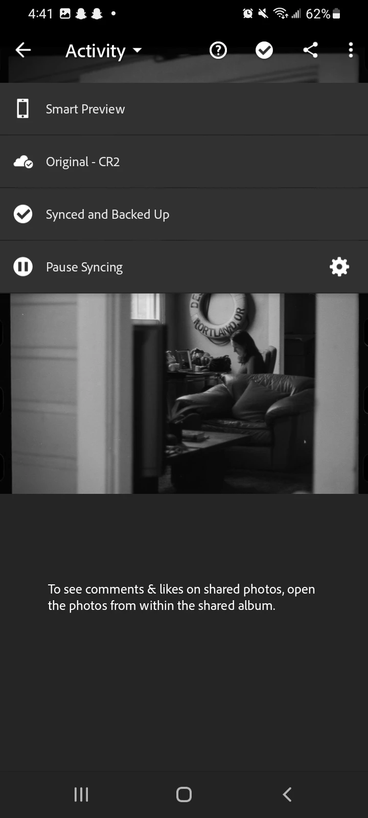I'm running Lightroom Android 8.2.3 on my phone, which is running on One UI 5.1. Photos from my last two imports are getting stuck on "Loading Smart Preview" when I try to edit them, with the loading wheel determined to spin itself around for all eternity. Photos from my previous imports are loading just fine.