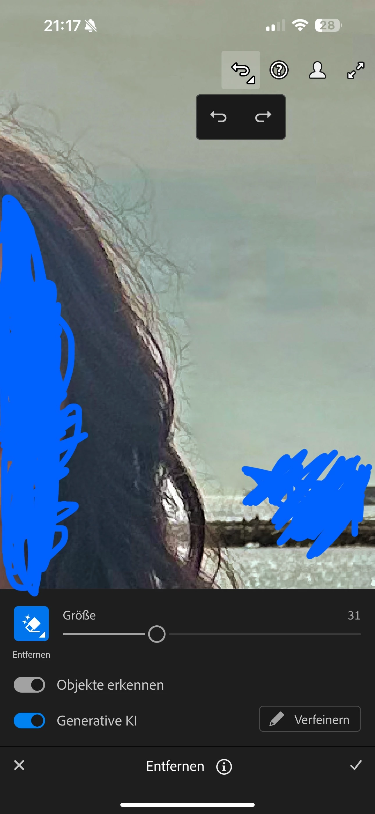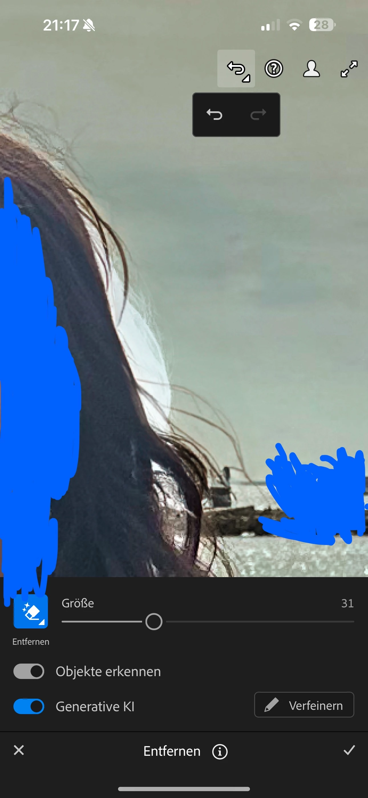 Wenn ich in der ios App von Lightroom Objekte entferne, bleibt das eigentliche Objekt immer als weißer Schatten zurück. Es gibt keine Möglichkeit, diesen zu entfernen. Das kam in den letzten 3 Monaten immer mal wieder vor, jetzt dauerhaft. Kennt das Problem jemand? 😮💨