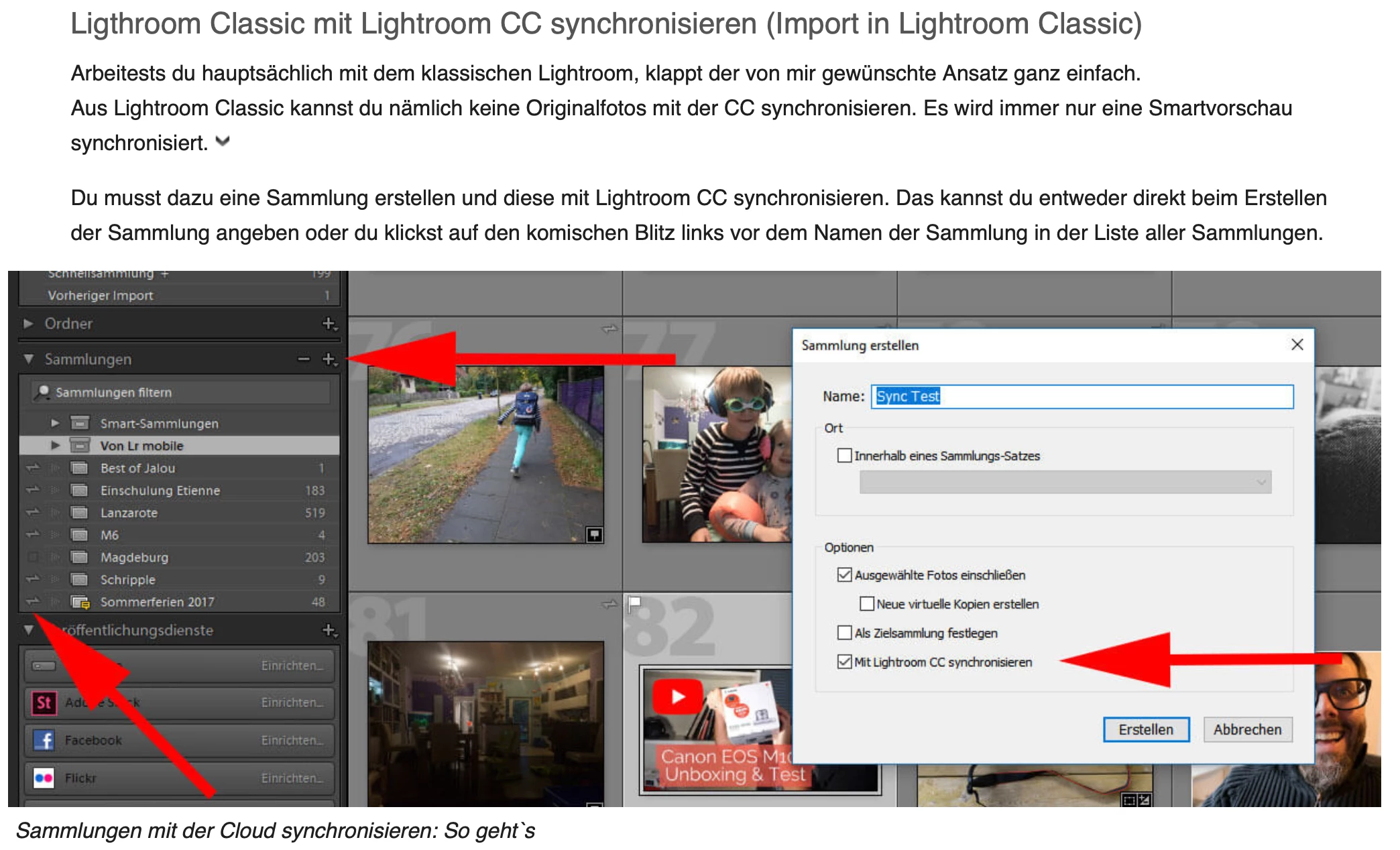 Sammlungen in classic mit Lightroom cc synchronisieren