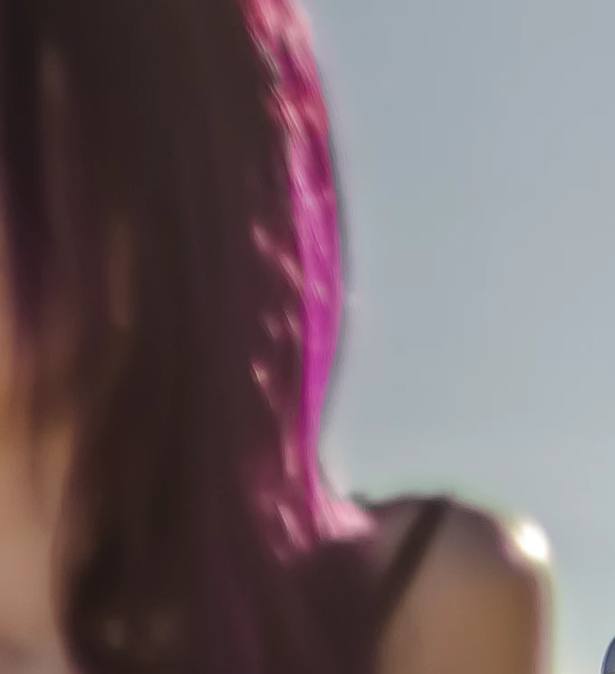 I'm done with editing my photo and noticed this hard edge in the hair of the model (made the photo with f1.8 so don't wonder about the blurry look). How can I delete it WITHOUT Photoshop, just with Lightroom? And how could this happen? Which setting caused this?