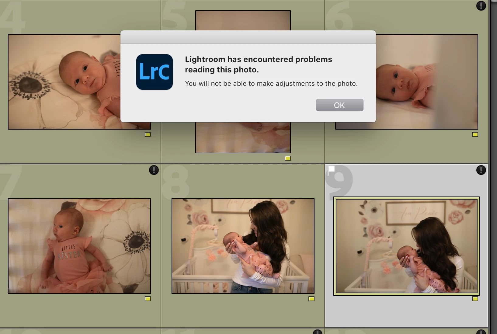 Lightroom has given me this message for multiple sessions - or I'll be editing a session and all of a sudden they all go bad? Super frustrating.