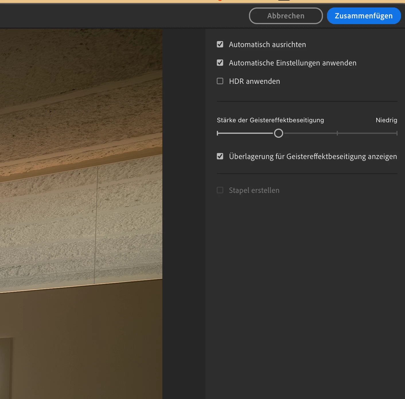 "Stapel" lässt sich im HDR Fenster nicht aktivieren.