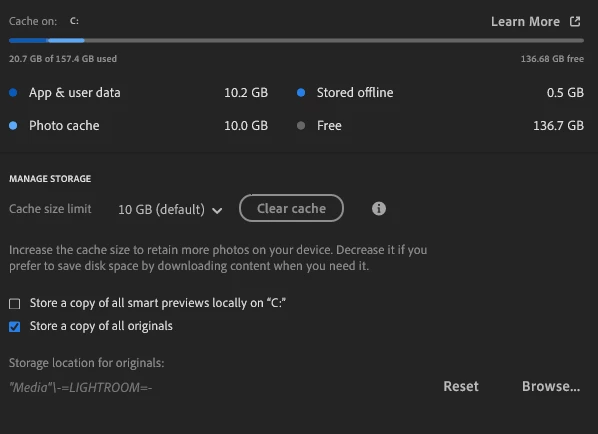 I'm trying to finally make the switch to cloud-based Lightroom, but I still want to store a copy of all my originals locally. I have turned on the "Store a copy of all originals" setting and pointed it to an internal SSD on my computer. It took most of a day, and I had to restart Lightroom a few times, but LR now says it is "synced and backed up." However, my Lightroom library has 133,666 photos and videos, but the folder on my drive only has 129,010 files. Why wouldn't Lightroom save all my originals?