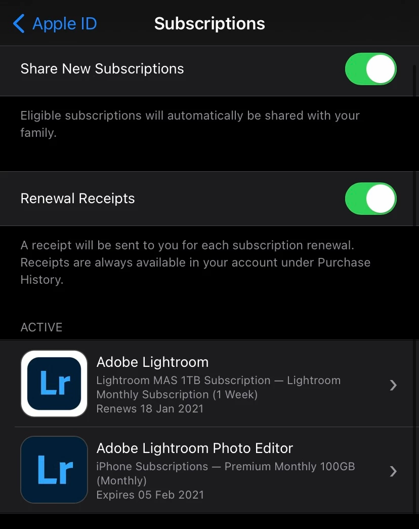 Subscription of Lightroom