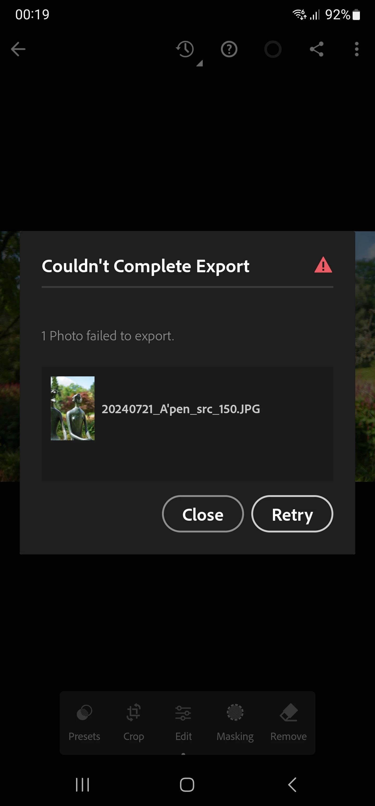 Suddenly impossible to download any photo from Lightroom mobile on android