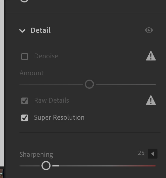 When I use Super Resolution (under detail ) On Lightroom Creative Cloud (CC) It says applying super resolution give me the percentage and then once it done I get an error with no changes made to my photo.