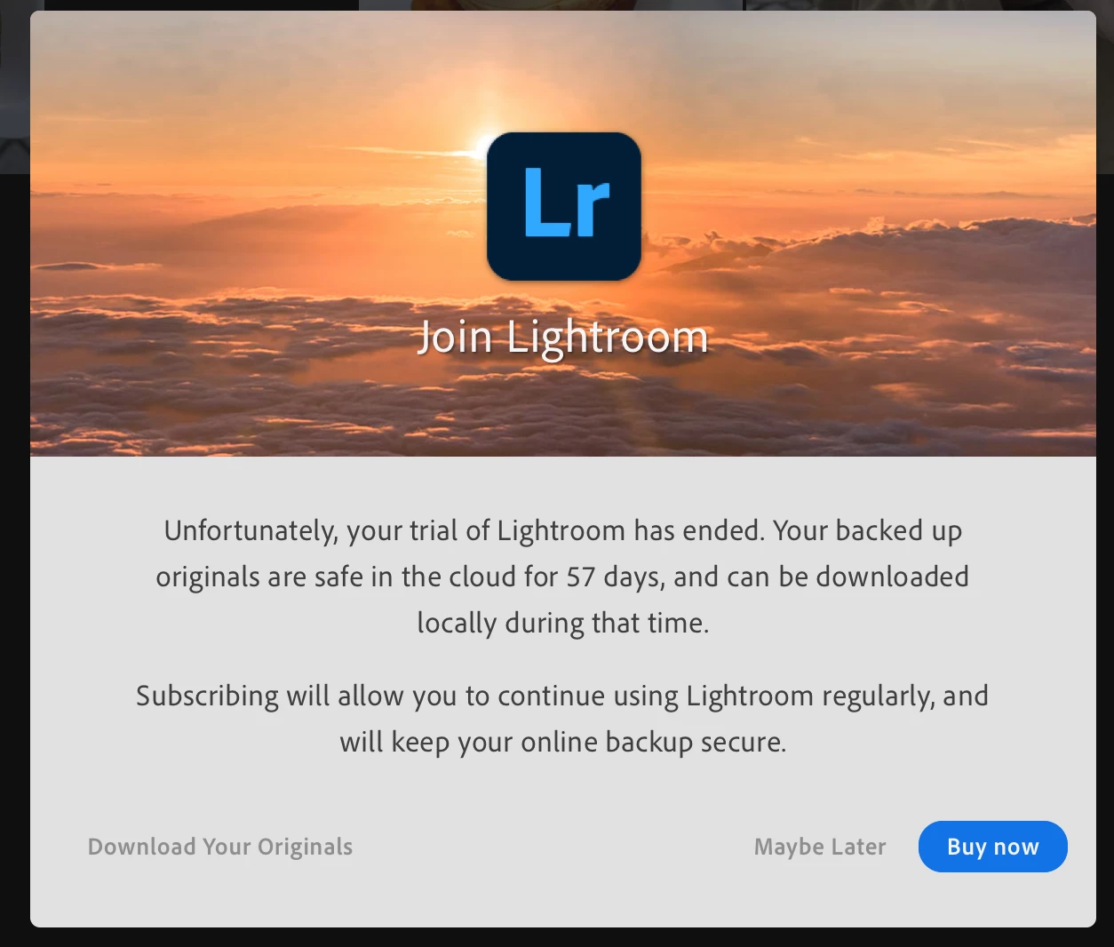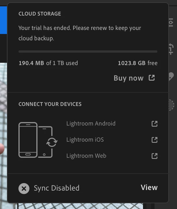 My adobe account still activate. But when I open lightroom in my iMac, there is a message popped up and tell me that my trial of lightroom is expired (but I bought Adobe, and other applications did not have this problem). When I press "buy now", there is a message showed that I subscribed and Lightroom is ready for you to use.When I go out and use, they said I need to buy it to use coz the trail is expired, and I saw the right top corner, I login the Adobe account but sync disable. How to fix this problem?