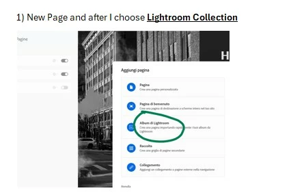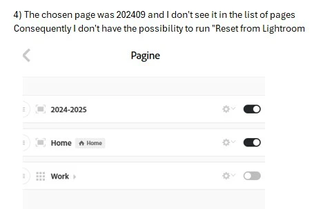 1) I add a new page and i choose Lightroom Collection. I then choose a collection that is still synchronized. I can use this page because I can point it as a link on another page. But why I don't see it in the list of pages?
