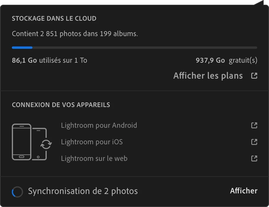 Bonjour, j'ai une bizarie sur LR CC ou ma synchronisation ne cesse de m'affiché que j'ai encore deux photographie en cours de synchronisations.