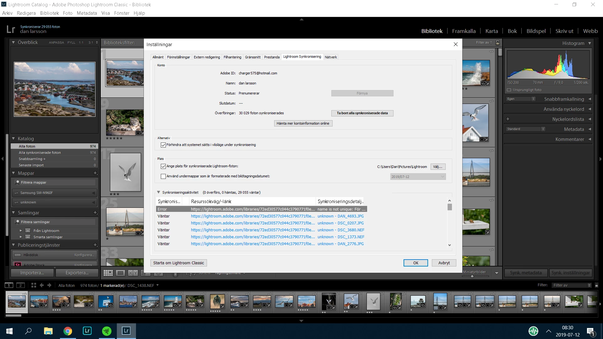 It found 29055 pictures that it started to syncronize and got to 974 and then prolly got stuck on ( I assume) this :