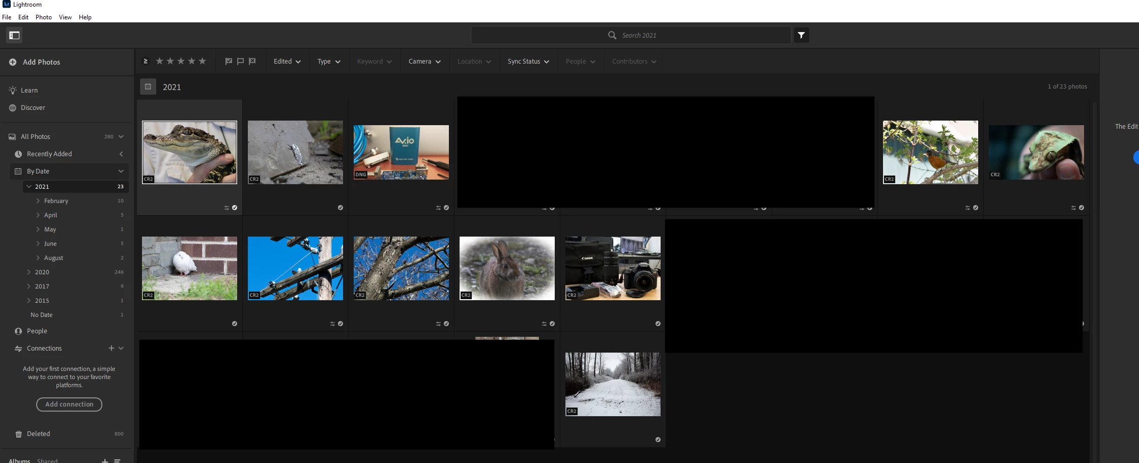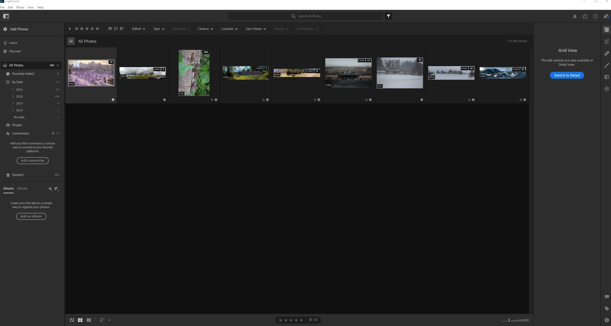 A button in lightroom labeled "all photos" is not showing all photos. If i select by dates we can clearly see photos appearing that do not appear under the "all photos" button. It all seems pretty self explanatory.