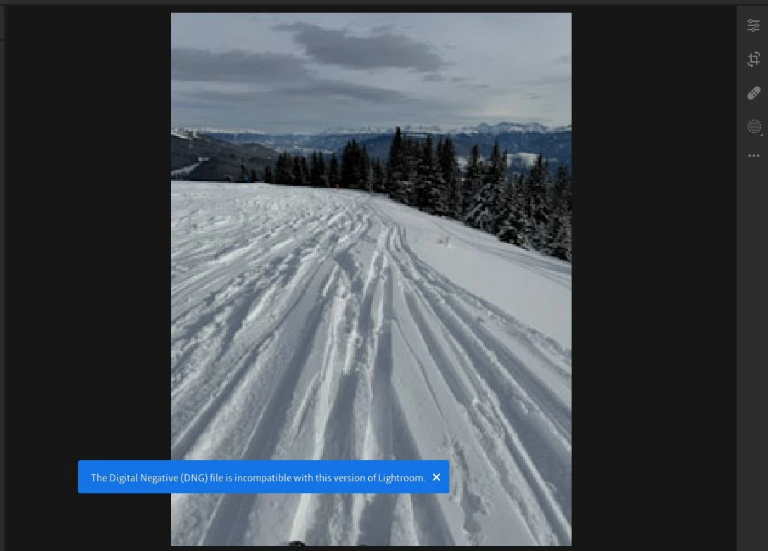 "The Digital native (DNG) file is incompatible with this version of Lightroom."