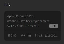 I have a new Apple iPhone 15 Pro, and since then I am seeing the following error/warning/(??) in Lightroom on my PC, version 5.5.